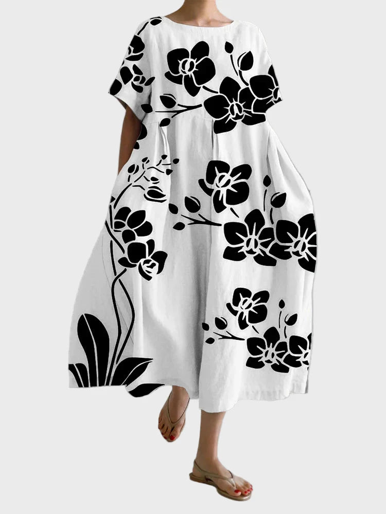 Το Ψίθυρος Τριαντάφυλλου είναι ένα φόρεμα που αποπνέει ρομαντισμό και διακριτική κομψότητα. Το μαύρο φόντο με τα λεπτά ροζ λουλούδια δημιουργεί μια εκλεπτυσμένη και ταυτόχρονα θηλυκή εμφάνιση.
