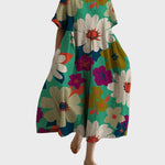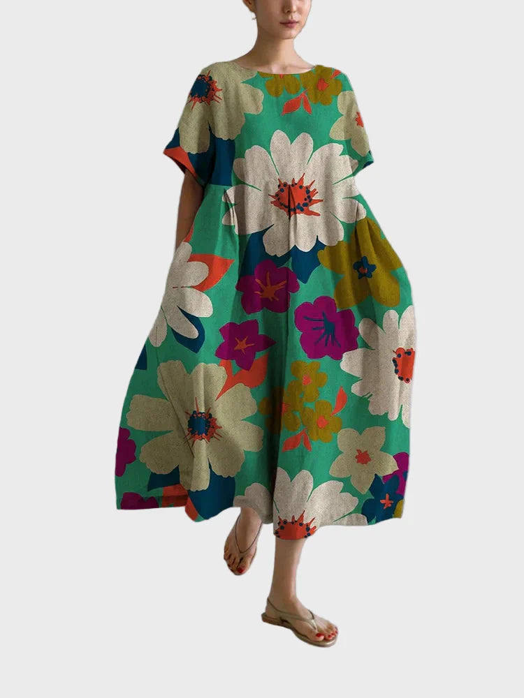 Το Ανθισμένος Κήπος είναι ένα φόρεμα που αποπνέει χαρά και ζωντάνια. Με πράσινο φόντο και μεγάλα λουλούδια σε έντονα χρώματα, είναι το ιδανικό κομμάτι για να ξεχωρίζετε σε κάθε καλοκαιρινή σας εμφάνιση.