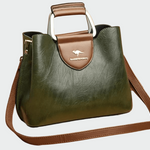 Κομψή τσάντα χειρός σε μαύρη και καφέ διχρωμία που συνδυάζει πολυτέλεια και πρακτικότητα. Οι μεταλλικές λαβές με επένδυση προσφέρουν μοναδικό χαρακτήρα και σταθερό κράτημα, ενώ το μακρύ αποσπώμενο λουράκι επιτρέπει να φορεθεί και χιαστί. Το ευρύχωρο εσωτερικό της προσφέρει αρκετό χώρο για τα καθημερινά απαραίτητα, κάνοντάς την ιδανική για επαγγελματικές και κομψές εμφανίσεις.