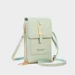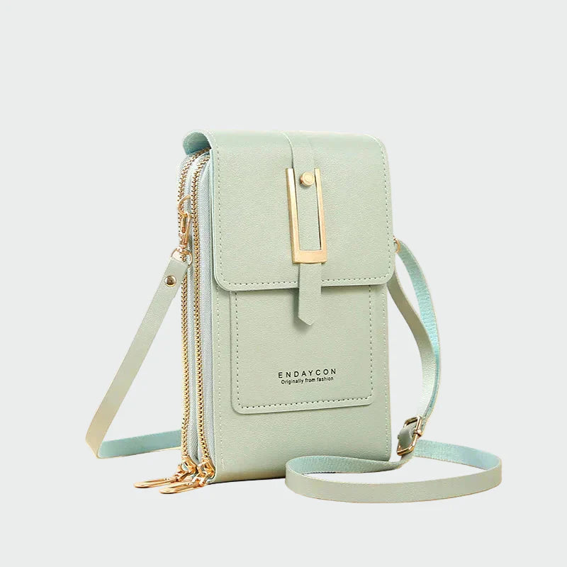 Μικρή τσάντα χιαστί σε απαλό πράσινο χρώμα με κομψό και σύγχρονο σχεδιασμό. Διαθέτει καπάκι με μεταλλική λεπτομέρεια σε χρυσό, καθώς και διπλά φερμουάρ που προσφέρουν πρακτική οργάνωση και ασφάλεια. Το ελαφρύ λουράκι επιτρέπει άνετη μεταφορά, καθιστώντας την ιδανική επιλογή για καθημερινές βόλτες ή ταξίδια. Ένα αξεσουάρ που συνδυάζει φρεσκάδα, στυλ και λειτουργικότητα.