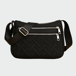 Σύγχρονη γυναικεία τσάντα ώμου σε μαύρη απόχρωση, με καπιτονέ μοτίβο πλεξίδας που χαρίζει μοντέρνο και κομψό χαρακτήρα. Διαθέτει δύο εξωτερικές θήκες με φερμουάρ για εύκολη οργάνωση και φαρδύ ρυθμιζόμενο λουράκι που προσφέρει άνεση στη χρήση. Ιδανική επιλογή για καθημερινές εμφανίσεις με πρακτικότητα και στυλ.