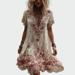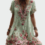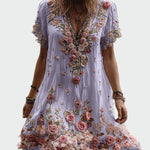Φόρεμα σε Βίντατζ στυλ με κοντό μανίκι και Κομψό Λουλουδάτο Κέντημα