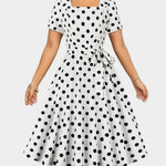Ρετρό Πουά Φόρεμα με Ζώνη και Τετράγωνη Λαιμόκοψη