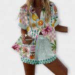 Φώτισε το καλοκαίρι σου με το κοντό σύνολο Maevin με σχέδιο φρούτων – μια παιχνιδιάρικη και φρέσκια πινελιά για την καθημερινή σου άνεση. Με νόστιμες απεικονίσεις φρούτων και μια αέρινη σιλουέτα, αυτό το σετ φέρνει χαρά σε κάθε βήμα. Ιδανικό για βόλτες στην παραλία, brunch με φίλες ή στυλάτες στιγμές χαλάρωσης.