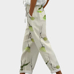 Φέρε τη φύση στην καθημερινότητά σου με αυτό το ανάλαφρο παντελόνι με βοτανικό print. Ιδανικό για χαλαρές εξορμήσεις και στιγμές χαλάρωσης.