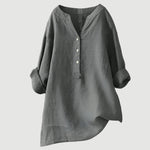 Αποπνεύστε διακριτική κομψότητα με αυτήν τη λευκή μπλούζα σε minimal σχεδιασμό. Ο χαλαρός της χαρακτήρας με V λαιμόκοψη και κουμπιά μπροστά προσφέρει πρακτικότητα και στυλ, ενώ τα γυρισμένα μανίκια προσδίδουν μια ανεπιτήδευτη και μοντέρνα πινελιά. Ιδανική επιλογή για καθημερινές και επαγγελματικές εμφανίσεις.