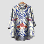 Προσθέστε παιχνιδιάρικη διάθεση στο στυλ σας με αυτήν τη μπλούζα σε μπλε απόχρωση, διακοσμημένη με χαριτωμένο σχέδιο σκύλου. Ο άνετος και φαρδύς σχεδιασμός της προσφέρει ελευθερία κινήσεων, ενώ το κλασικό γιακάς με κουμπιά προσθέτει μια διακριτική πινελιά κομψότητας. Ιδανική επιλογή για casual εμφανίσεις με ξεχωριστό χαρακτήρα.