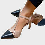 Αυτές οι κομψές γόβες σε μπεζ χρώμα με μαύρη μύτη αποτελούν έναν συνδυασμό κλασικής κομψότητας και σύγχρονου στυλ. Ο λεπτός ιμάντας σε σχήμα Τ προσφέρει σταθερότητα και αναδεικνύει το πόδι, ενώ το ψηλό τακούνι προσθέτει ύψος και θηλυκότητα. Ιδανικές για βραδινές εξόδους, επαγγελματικά ραντεβού ή επίσημες εμφανίσεις.