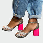 Αυτά τα ασημί σανδάλια με σχέδιο κοψίματα προσφέρουν μια κομψή και μοντέρνα πινελιά σε κάθε εμφάνιση. Ο λεπτός ιμάντας στον αστράγαλο προσφέρει σταθερότητα, ενώ το ανοιχτό σχέδιο μπροστά αφήνει το πόδι να αναπνέει, προσδίδοντας άνεση και στυλ. Είναι η τέλεια επιλογή για καλοκαιρινές εξόδους ή βραδινές εμφανίσεις.