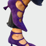 Αυτές οι μωβ γόβες με ιδιαίτερα κοψίματα και λουράκια αποπνέουν έντονο χαρακτήρα και κομψότητα. Το χαμηλό τακούνι προσφέρει άνεση χωρίς να στερεί στυλ, ενώ το μοναδικό design τις καθιστά ιδανικές για όσες θέλουν να ξεχωρίζουν με κάθε τους βήμα. Συνδυάζονται εύκολα με φορέματα αλλά και παντελόνια για μοντέρνες εμφανίσεις.