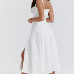 Ένα καλοκαιρινό φόρεμα με μπούστο που συνδυάζει θηλυκότητα και άνεση. Η εφαρμοστή γραμμή στο πάνω μέρος αναδεικνύει το ντεκολτέ, ενώ η αέρινη φούστα προσφέρει κίνηση και δροσερή αίσθηση. Ιδανικό για καλοκαιρινές βόλτες, διακοπές και κομψές καθημερινές εμφανίσεις.